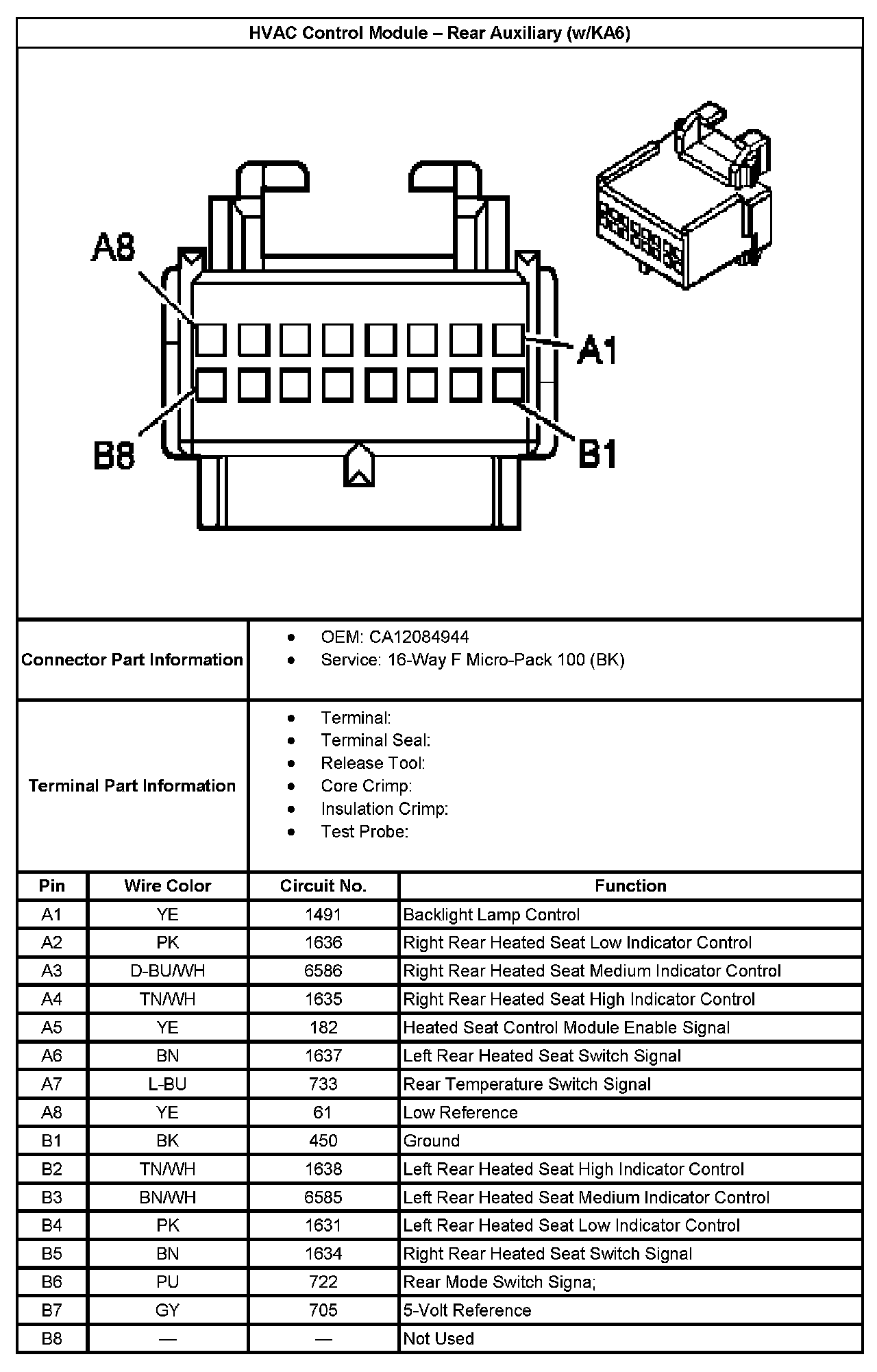 HVAC Control Module - Rear Auxiliary (With RPO Code KA6):