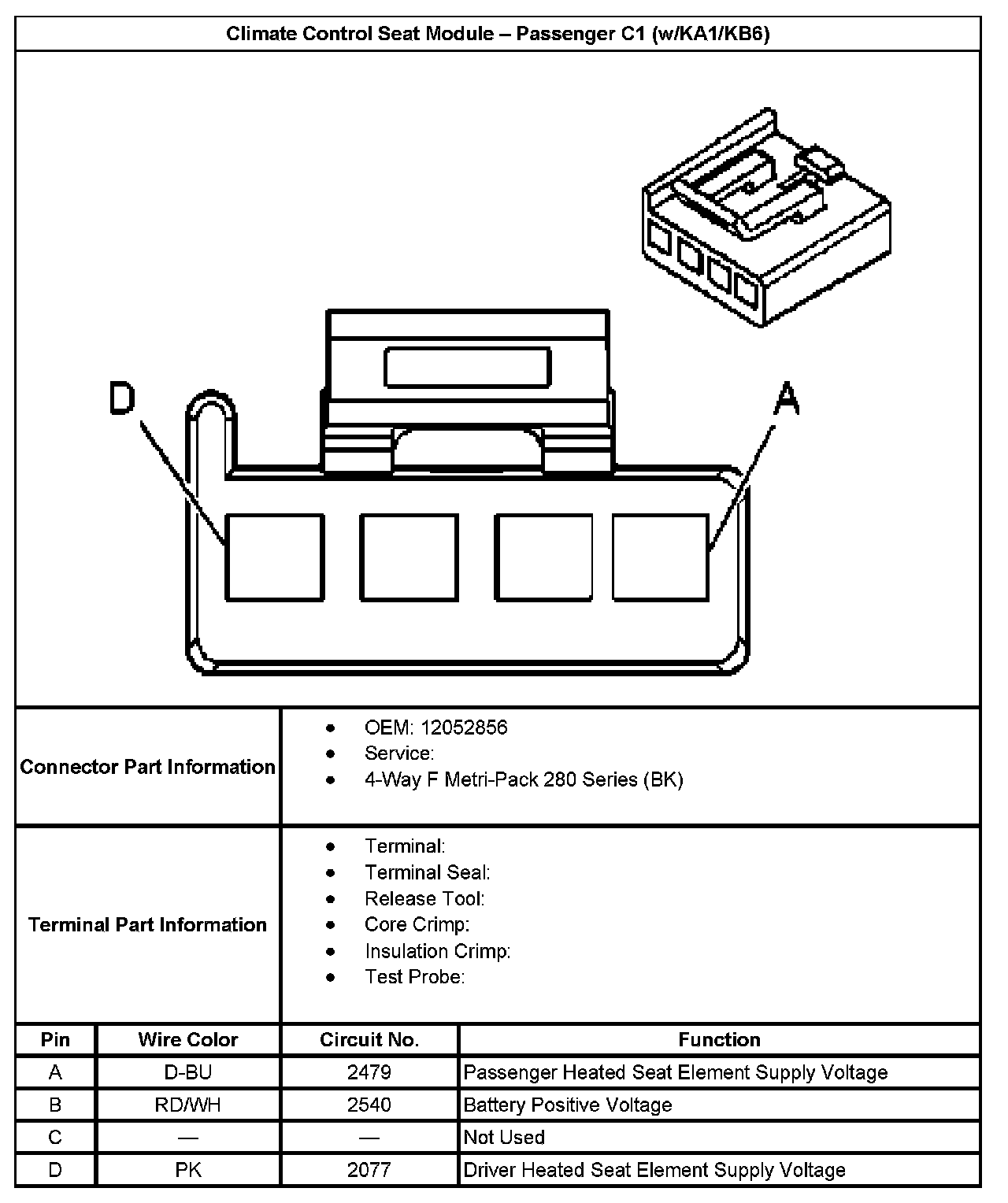 Climate Control Seat Module - Passenger C1 (With RPO Code KA1/KB6):