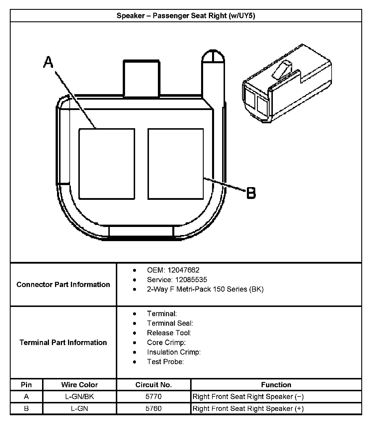 Speaker - Passenger Seat Right (With RPO Code UY5):