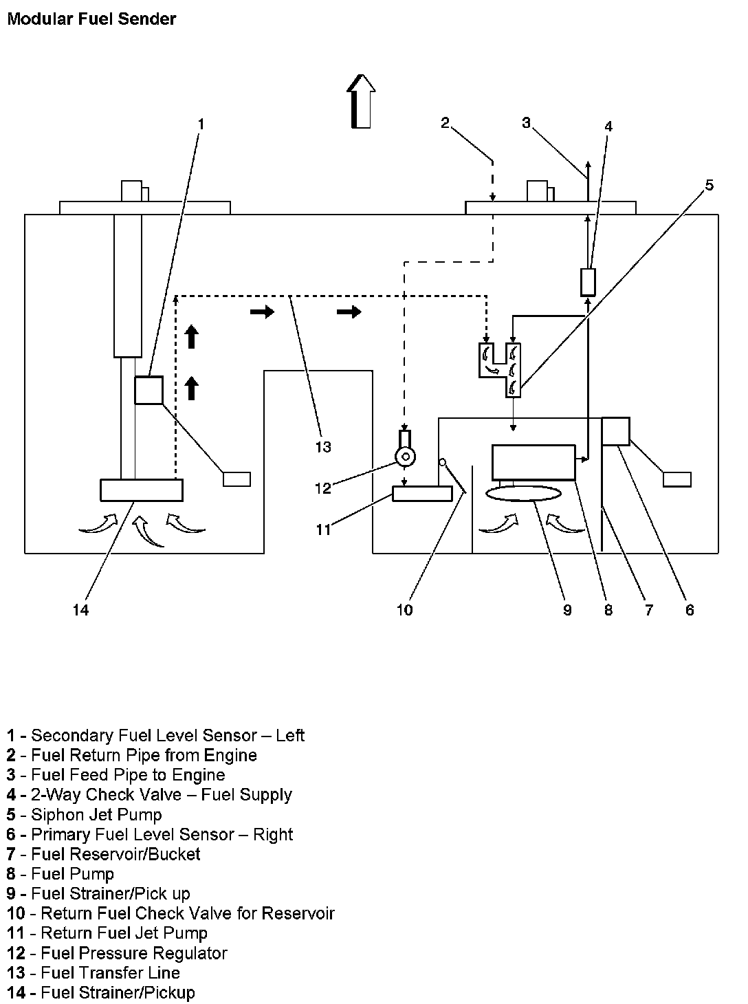 - The modular fuel sender assembly-The modular fuel sender assembly pumps fuel to the engine from the fuel tank.
