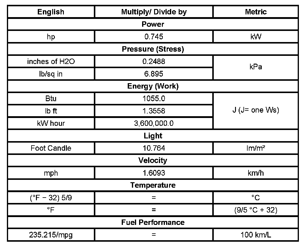 Conversion - English/Metric