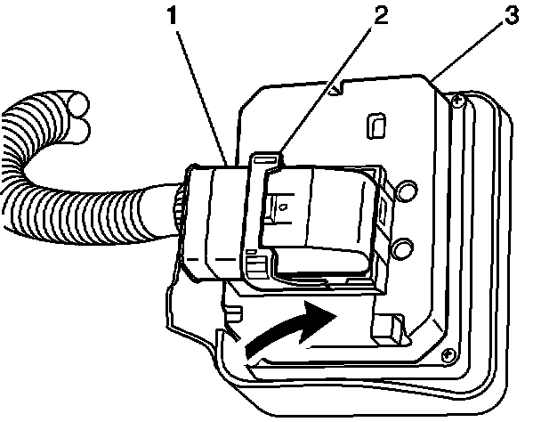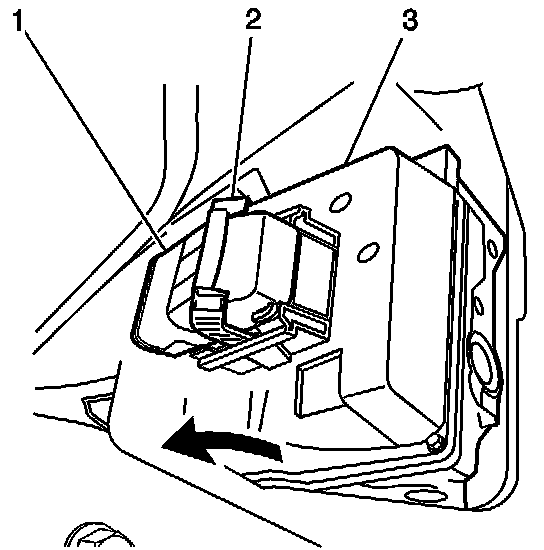 6. Rotate the EBCM connector tab (2) rearward to the locked position.