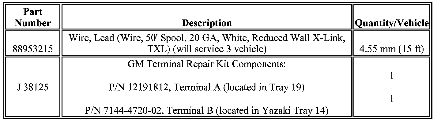 The wire required to complete this recall is to be obtained from General Motors Service Parts Operations (GMSPO). Please refer to your "involved vehicles listing" before ordering parts. Normal orders should be placed on a DRO = Daily Replenishment Order. In an emergency situation, parts should be ordered on a CSO = Customer Special Order.