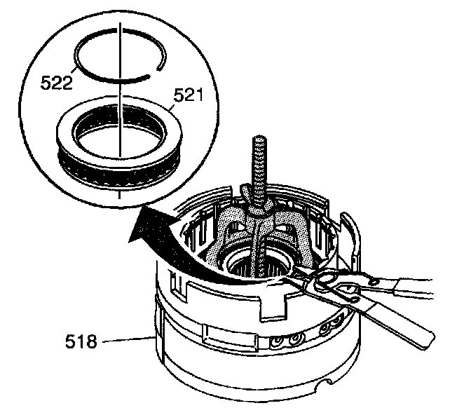 6. Install the 2nd clutch spring retainer ring (522) into the center support (518).