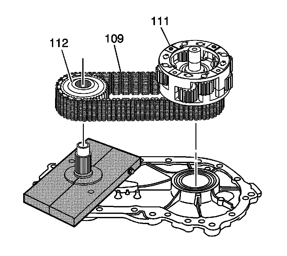 Remove the lower sprocket (112), chain (109) and carrier (111) as an assembly.