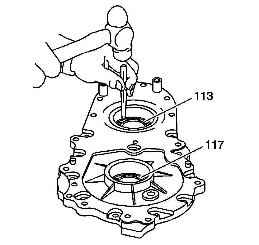 Using a hammer and a suitable punch, remove the front output bearing (113) and input bearing (117) if they are to be replaced.