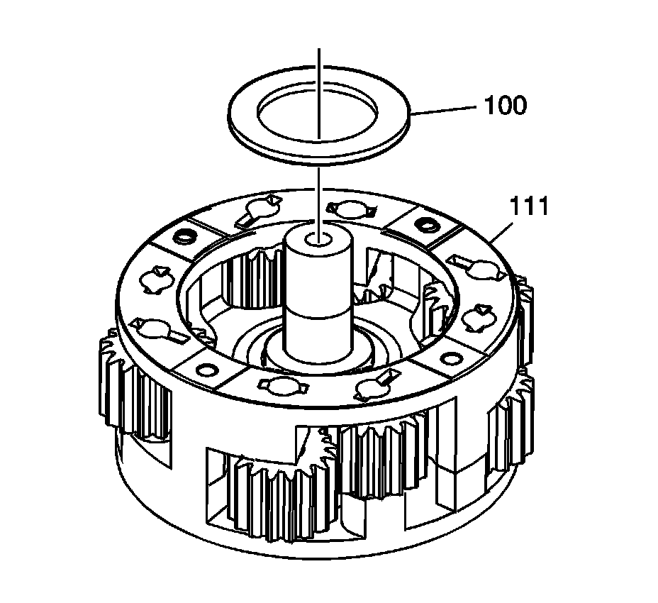 24. Remove the thrust washer (100) from the carrier (111).