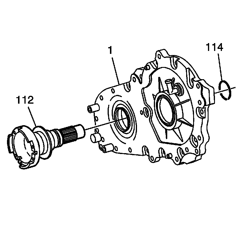 16. Assemble the front output shaft (112) to the case (1).