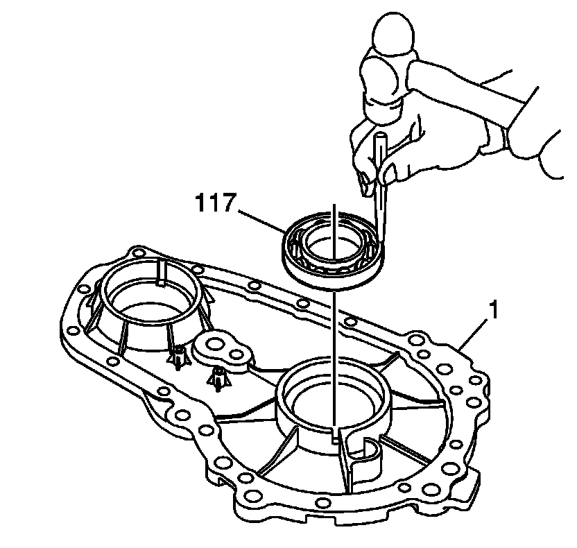 Install the input shaft bearing (117) into the case (1).