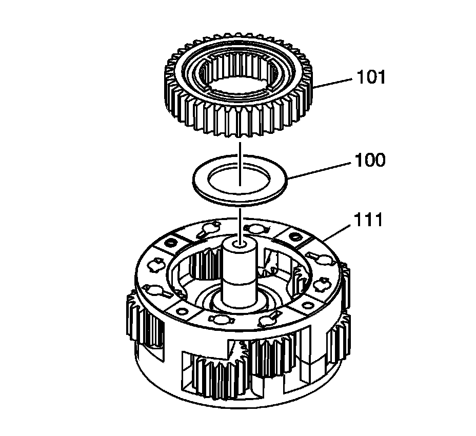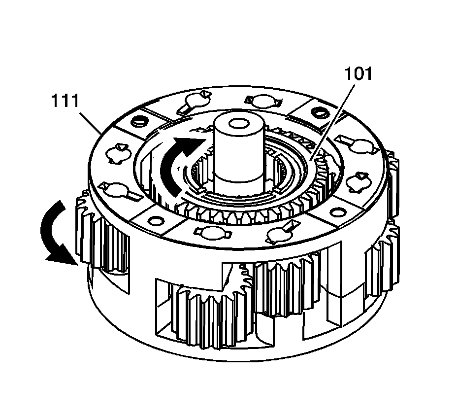 14. If the pinion gears are properly aligned, the sun gear (101) carrier assembly will rotate freely.