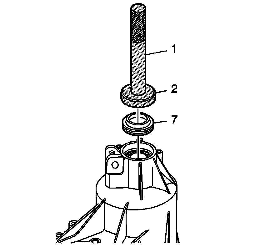 21. Using the J 46268 (2) and the J 8092 (1), install the rear output oil seal (7).