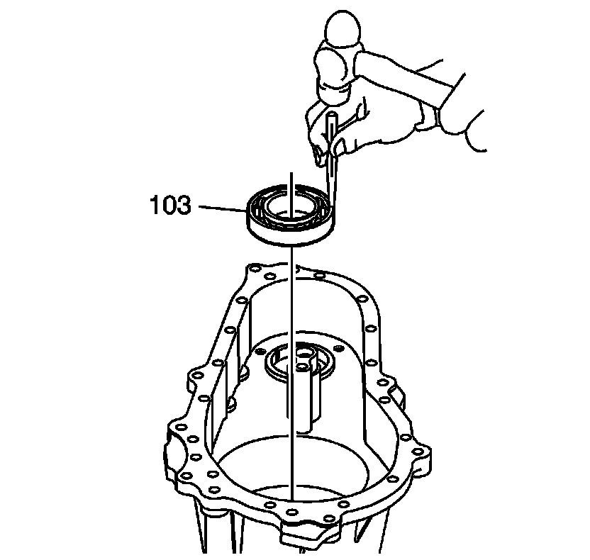 Install the rear output shaft bearing (104).
