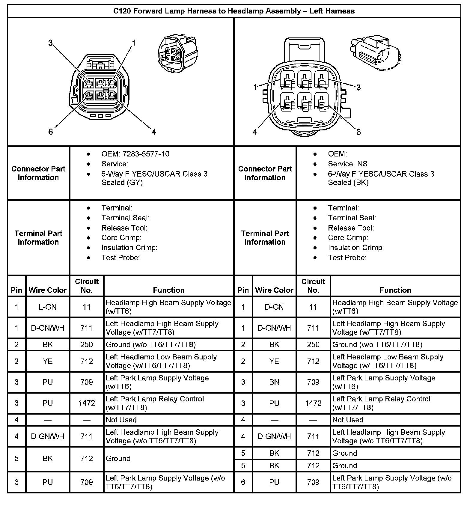 C120 Forward Lamp Harness To Headlamp Assembly - Left Harness: