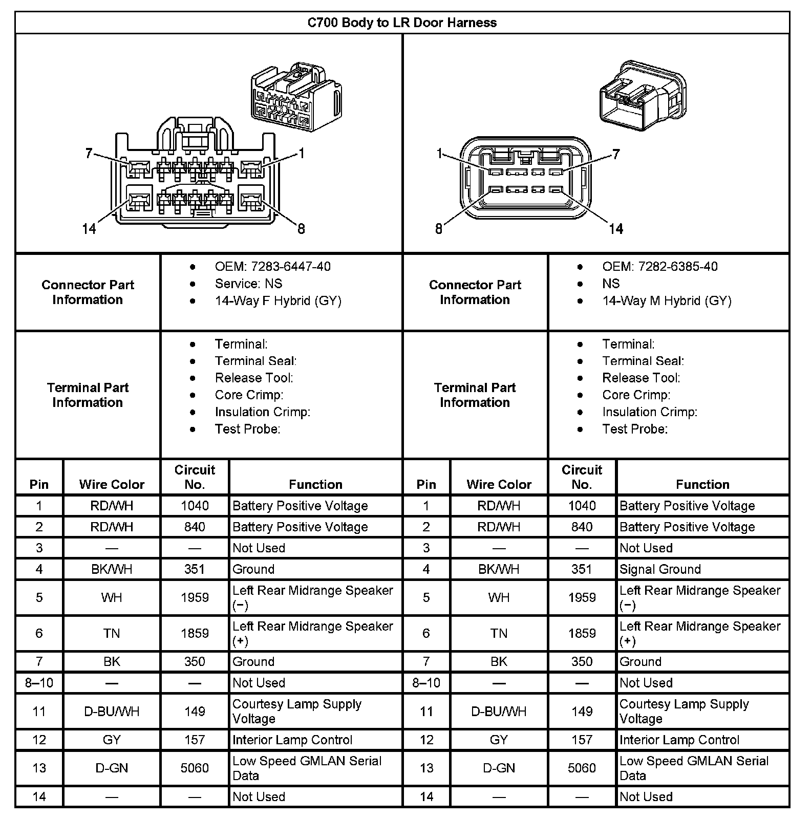 C700 Body To LR Door Harness: