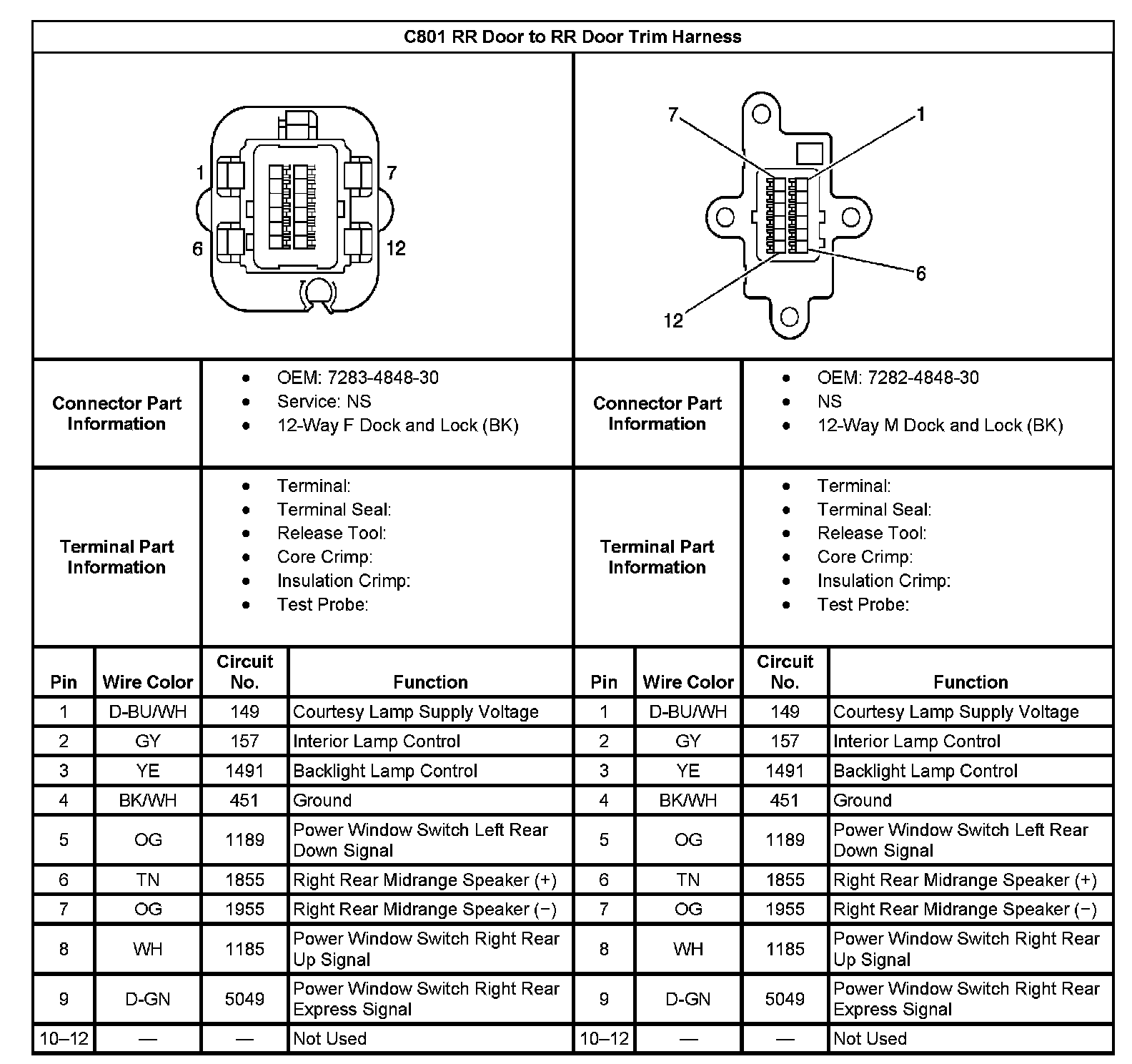 C801 RR Door To RR Door Trim Harness: