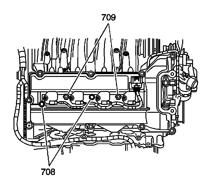 3. Install the ignition coil assembly bolts (708) and ball studs (709).