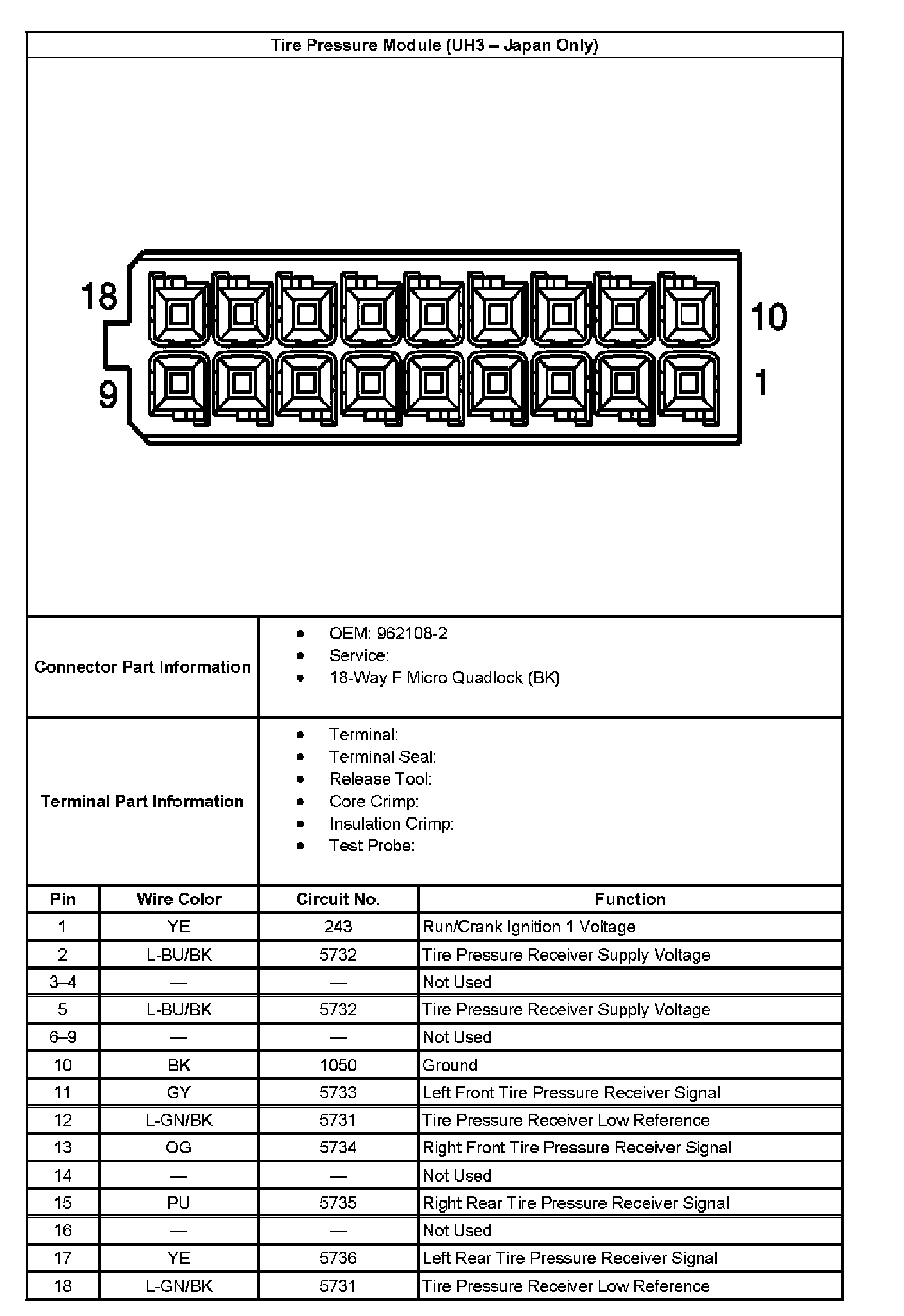 Tire Pressure Module (UH3 - Japan Only):