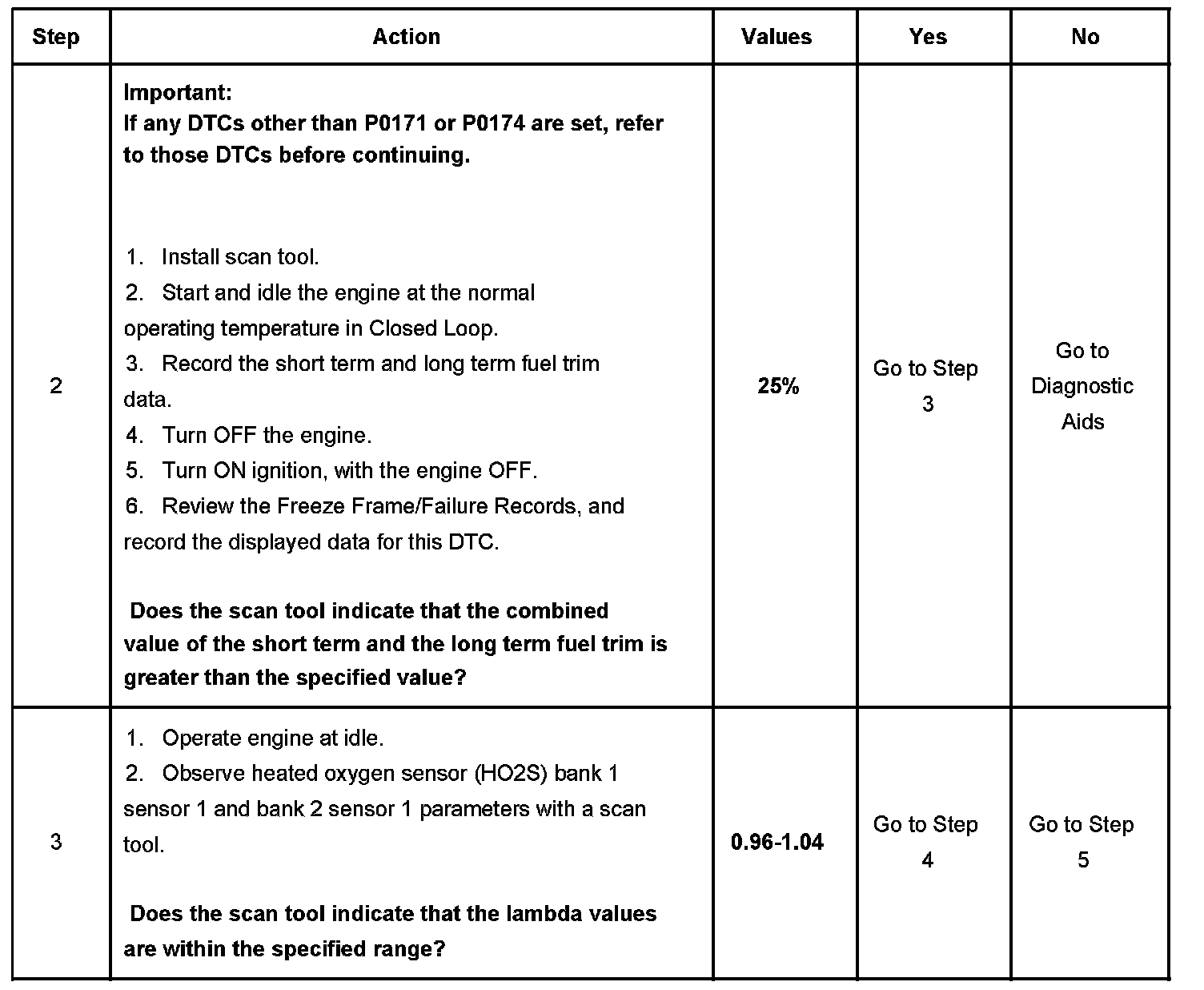 This bulletin is being issued to revise Steps 2 and 3 of DTC P0171 or P0174 in the Engine Controls sub-section of the Service Manual. Please replace the current information in the Service Manual with the following information.