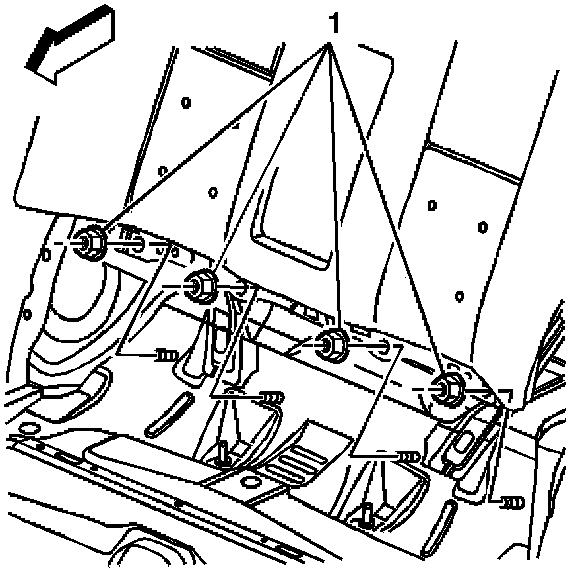 6. From inside of the vehicle, remove the four lower nuts (1) that attach the bottom of the seat back to the body.
