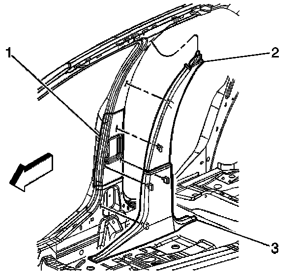 16. Carefully release the retaining clips and remove the lower "B" pillar trim panel (3).