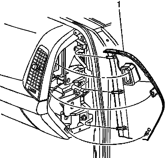 29. Remove the larger gray connector (1) that is attached to the "C" pillar.
