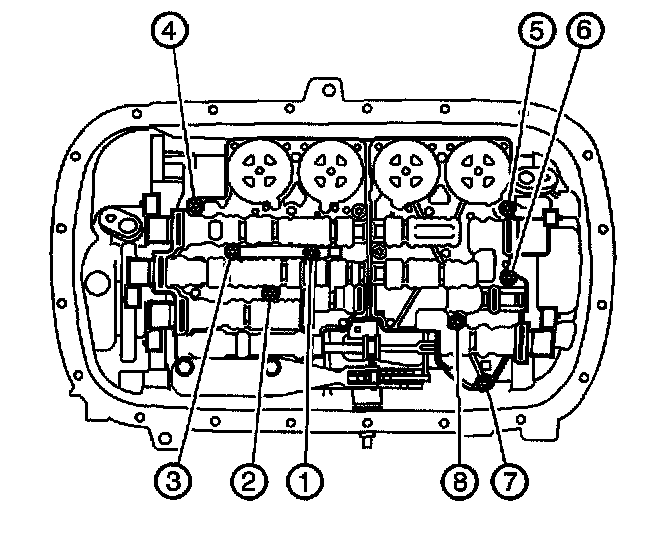 Tighten the control valve body accumulator bolts (49, 50, 51) to 11 Nm (8 ft. lbs.).