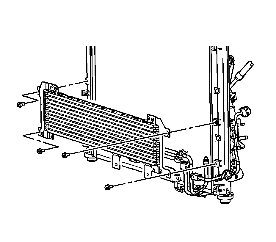 Reposition the condenser to access the auxiliary transmission oil cooler.