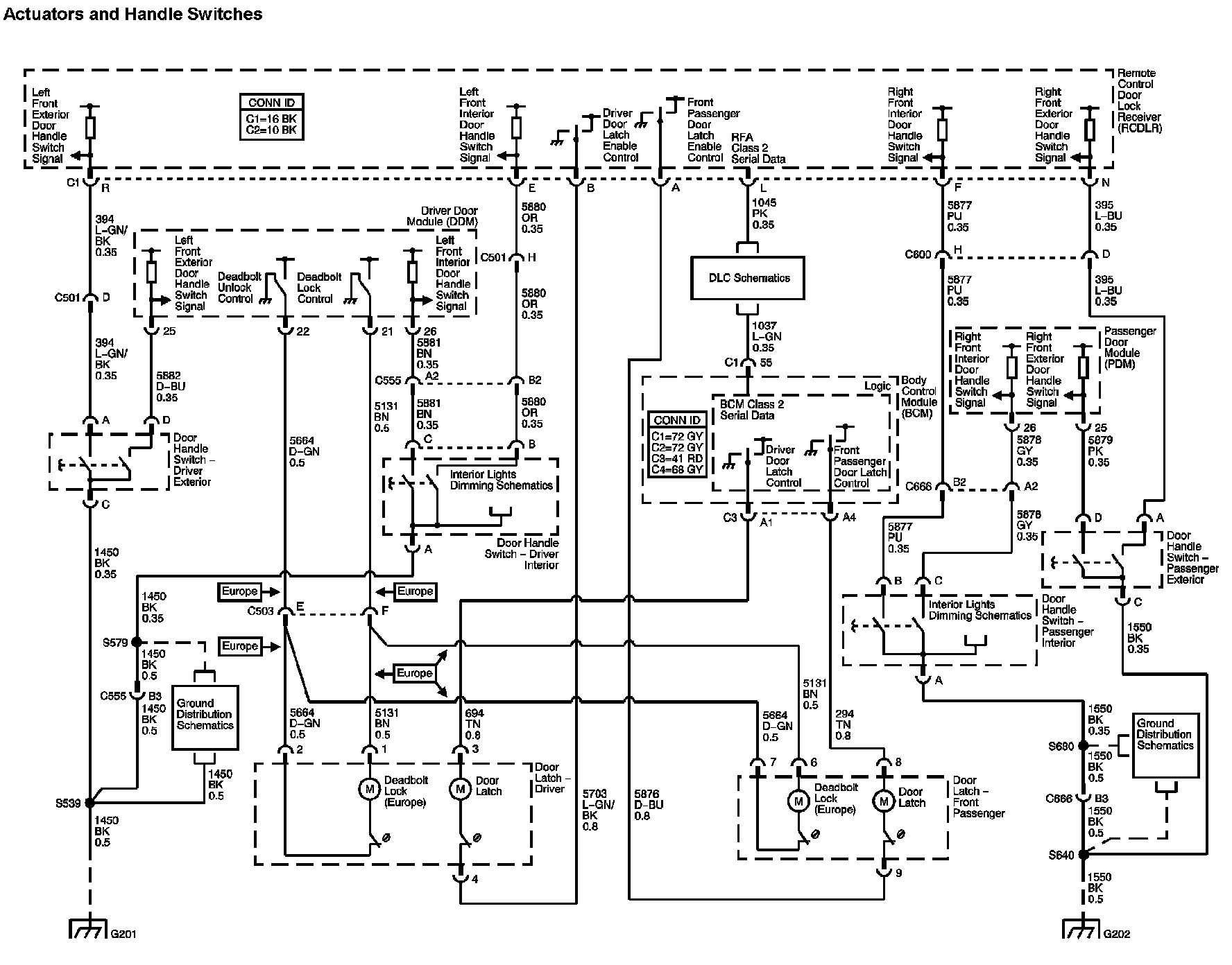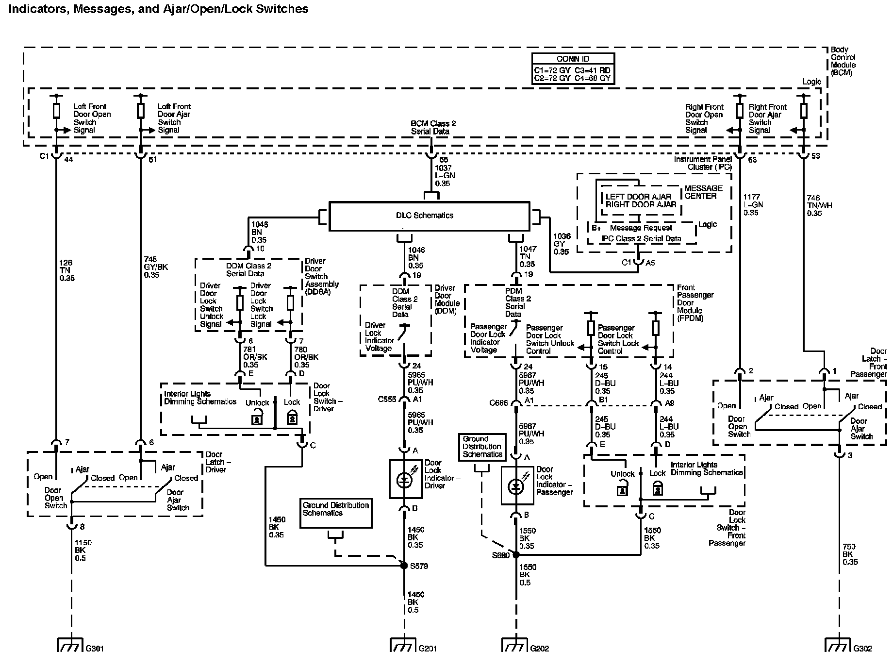 The locations for the Connectors, Grounds, Splices, and Grommets shown within these diagrams can be found via their numbers at Vehicle Locations.