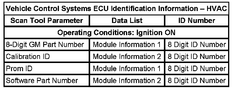 Vehicle Control Systems ECU Identification Information - HVAC: