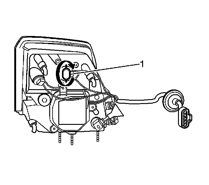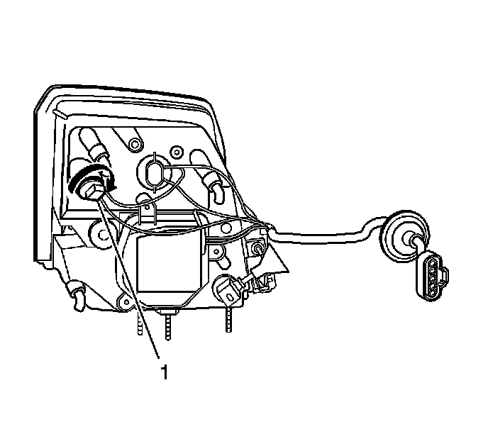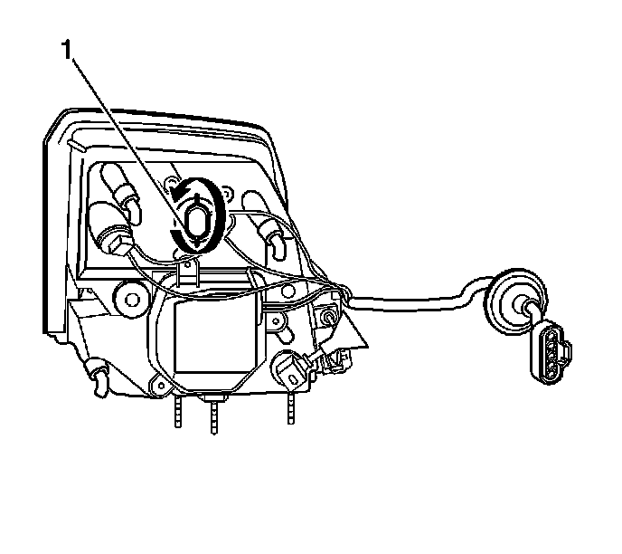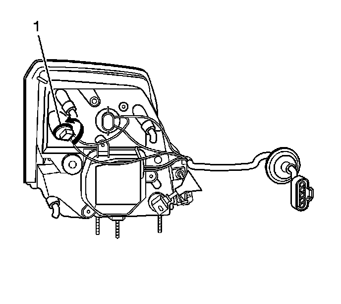 7. Remove the park/turn bulb/socket by rotating the socket counterclockwise (1).