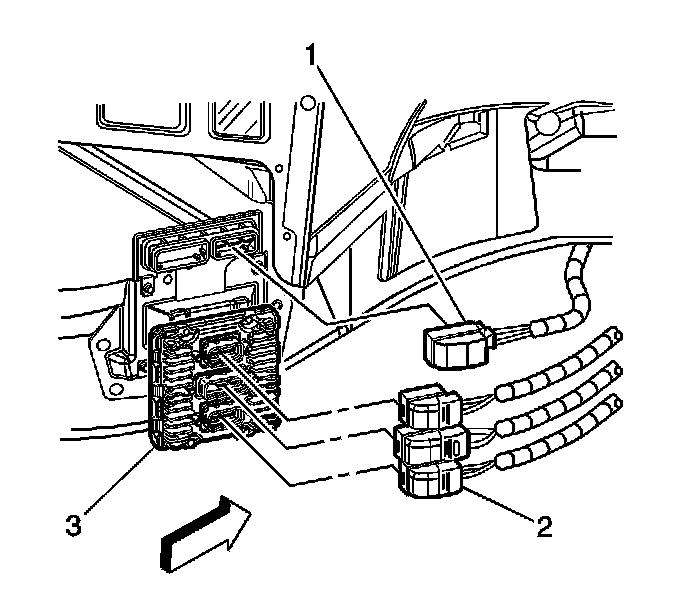 3. Connect the electrical connectors (2) to the ECM (3).