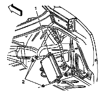 2. Remove the nuts (2) securing the OnStar(R) module (1) to the vehicle body.