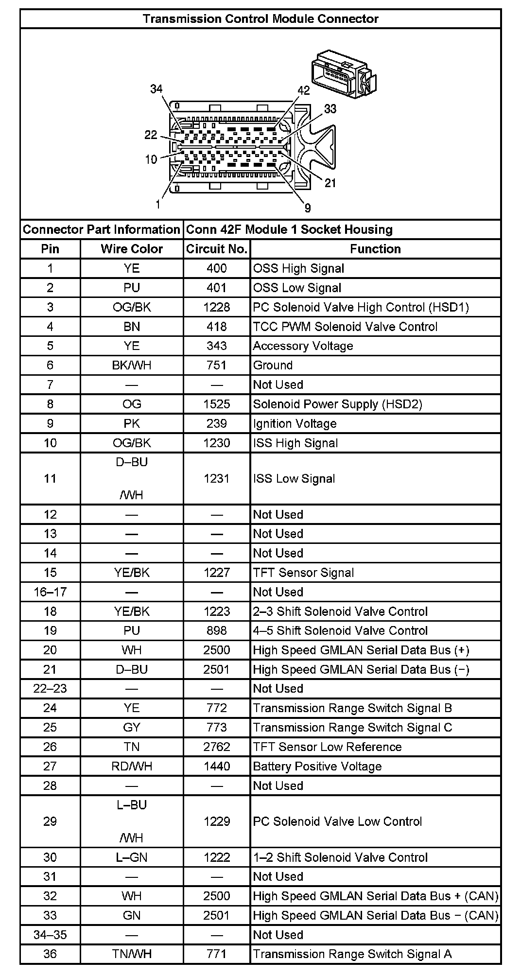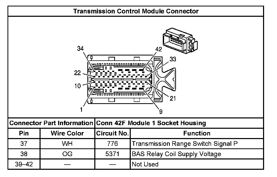 Transmission Control Module Connector: