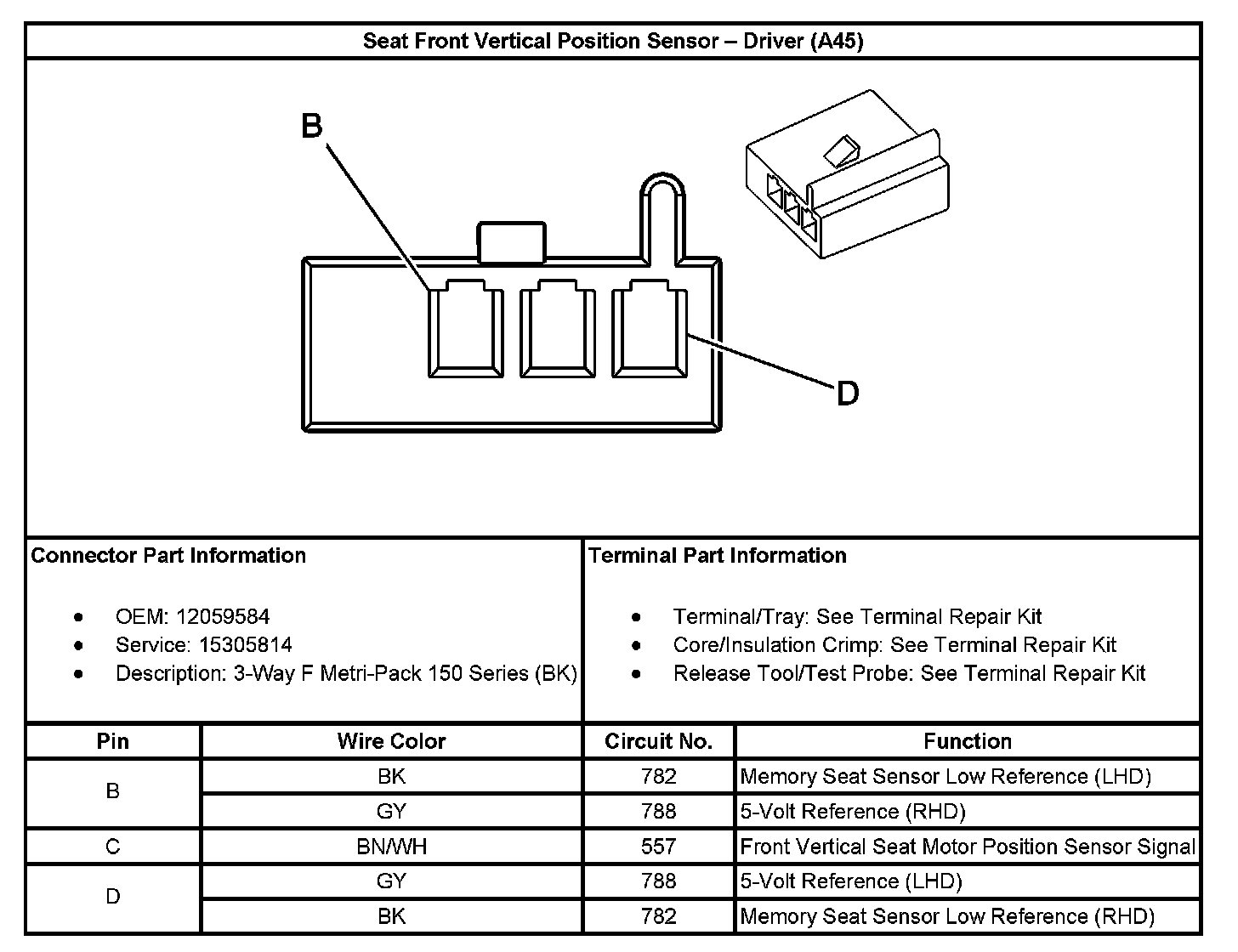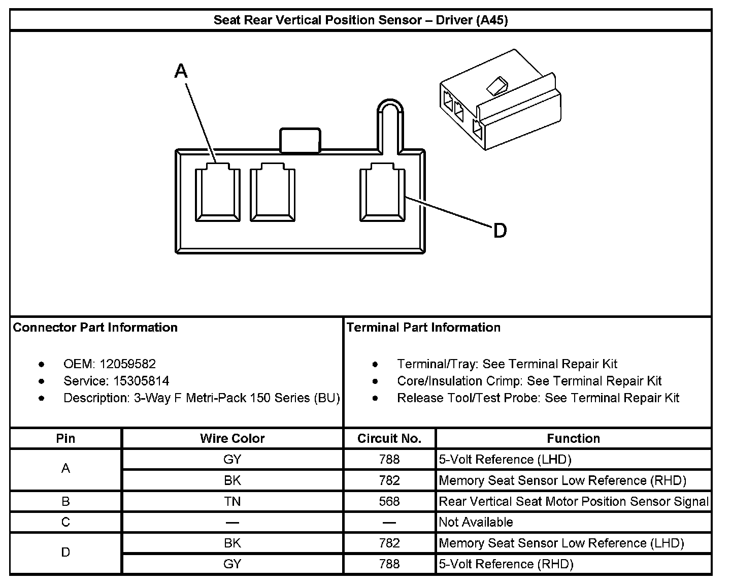 Seat Rear Vertical Position Sensor - Driver (With RPO Code A45):