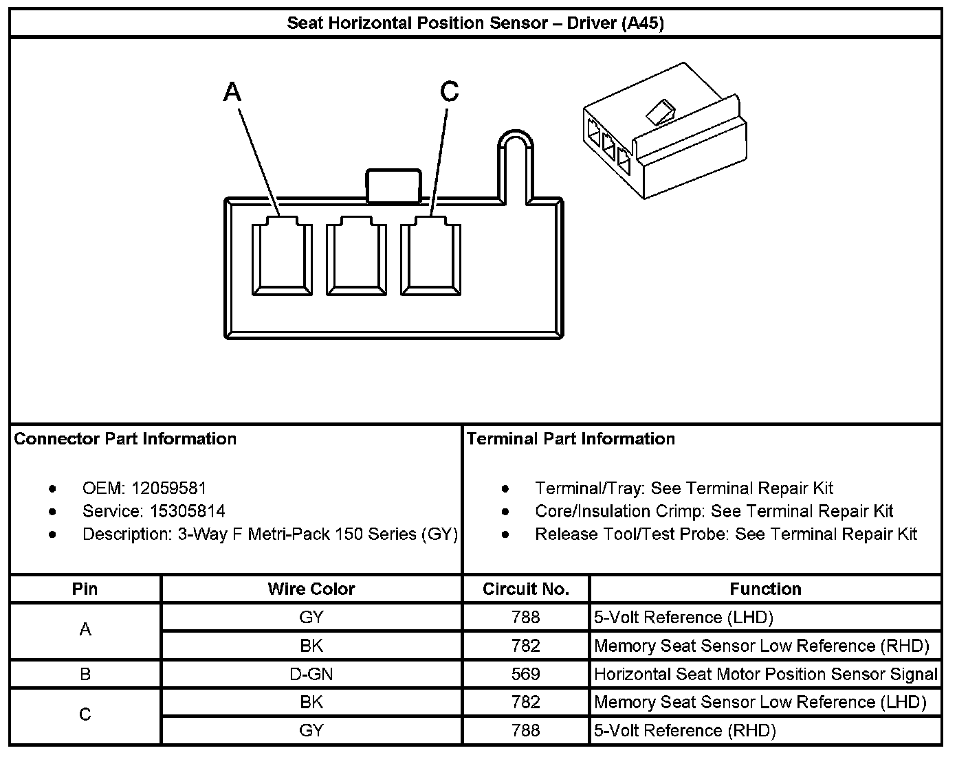 Seat Horizontal Position Sensor - Driver (With RPO Code A45):
