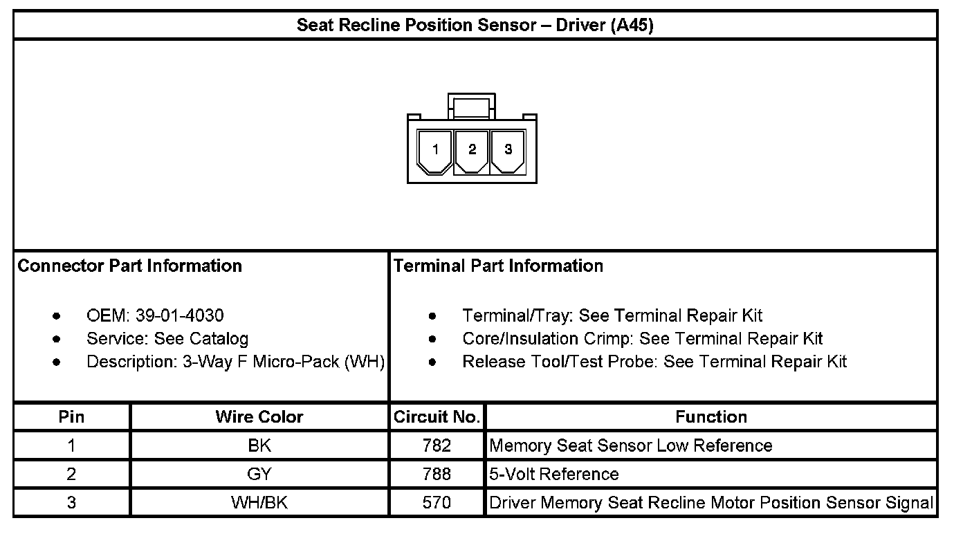 Seat Recline Position Sensor - Driver (With RPO Code A45):
