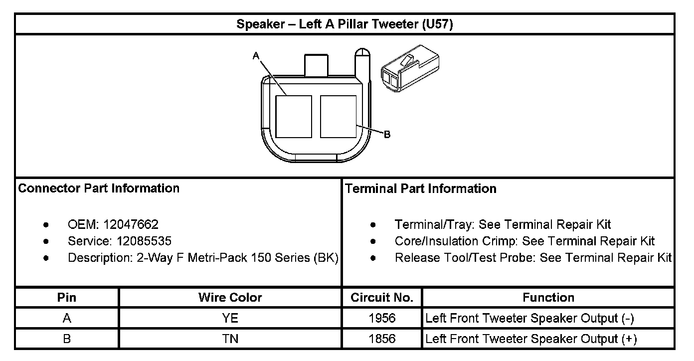 Speaker - Left A Pillar Tweeter (With RPO Code U57):
