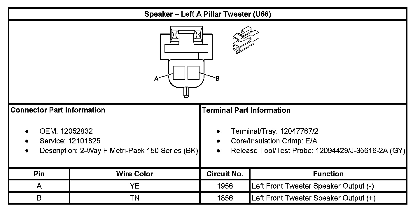 Speaker - Left A Pillar Tweeter (With RPO Code U66):