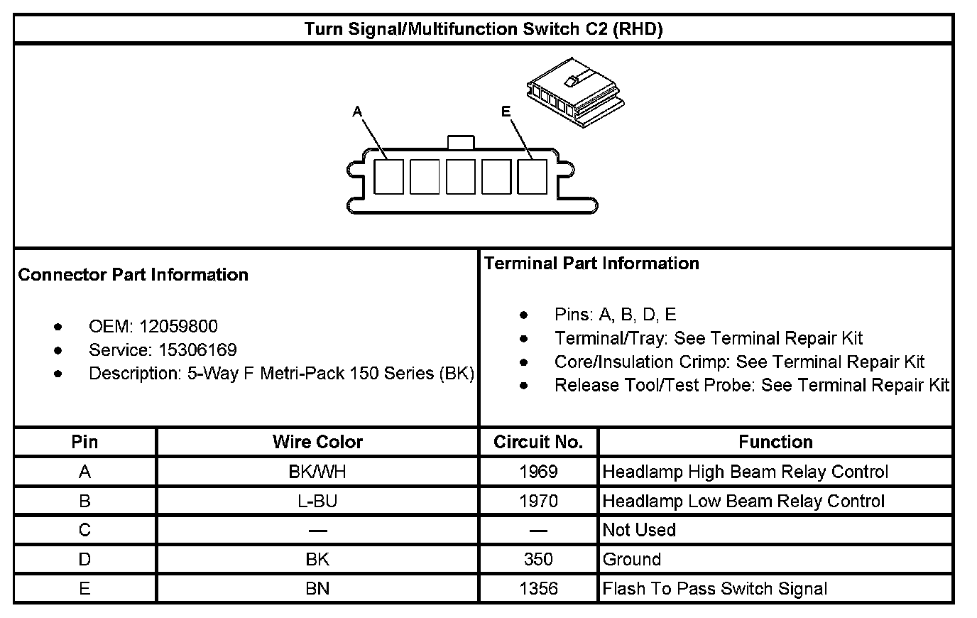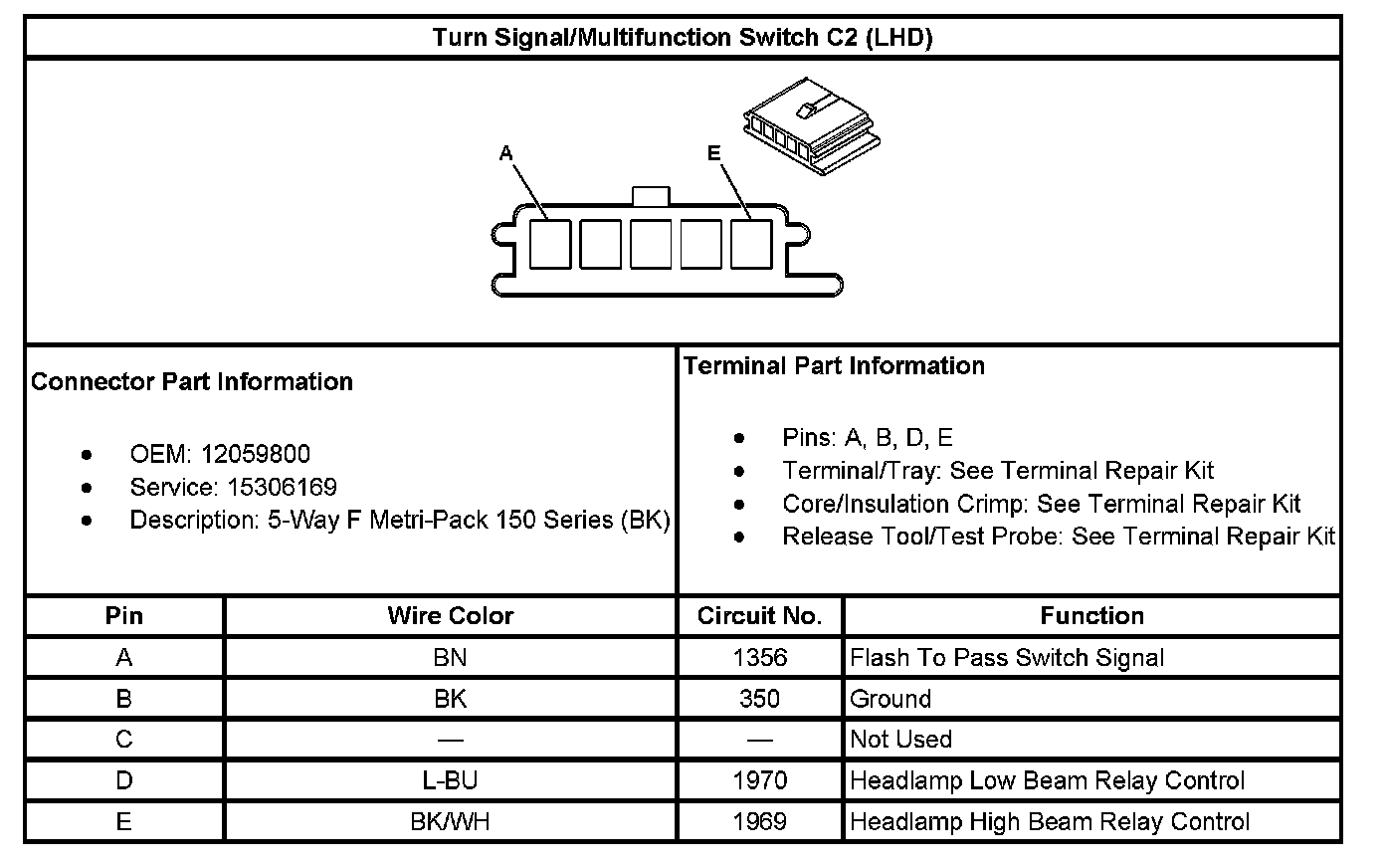 Turn Signal/Multifunction Switch C2 (LHD):