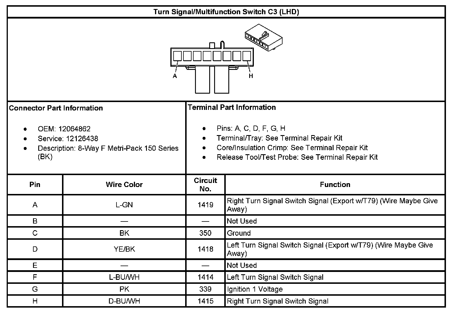 Turn Signal/Multifunction Switch C3 (LHD):