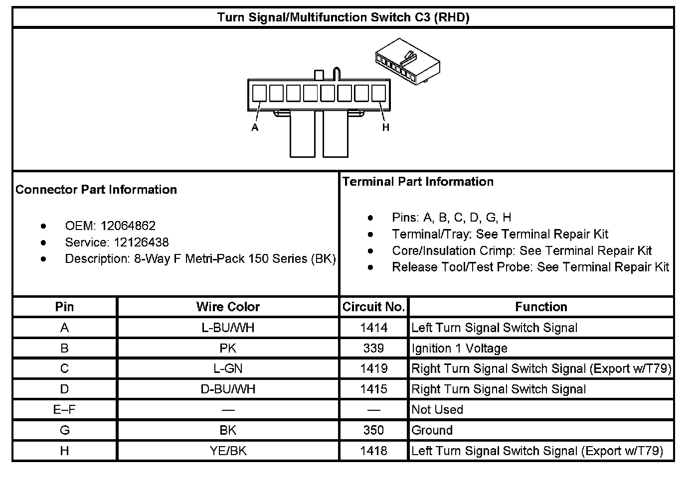 Turn Signal/Multifunction Switch C3 (RHD):