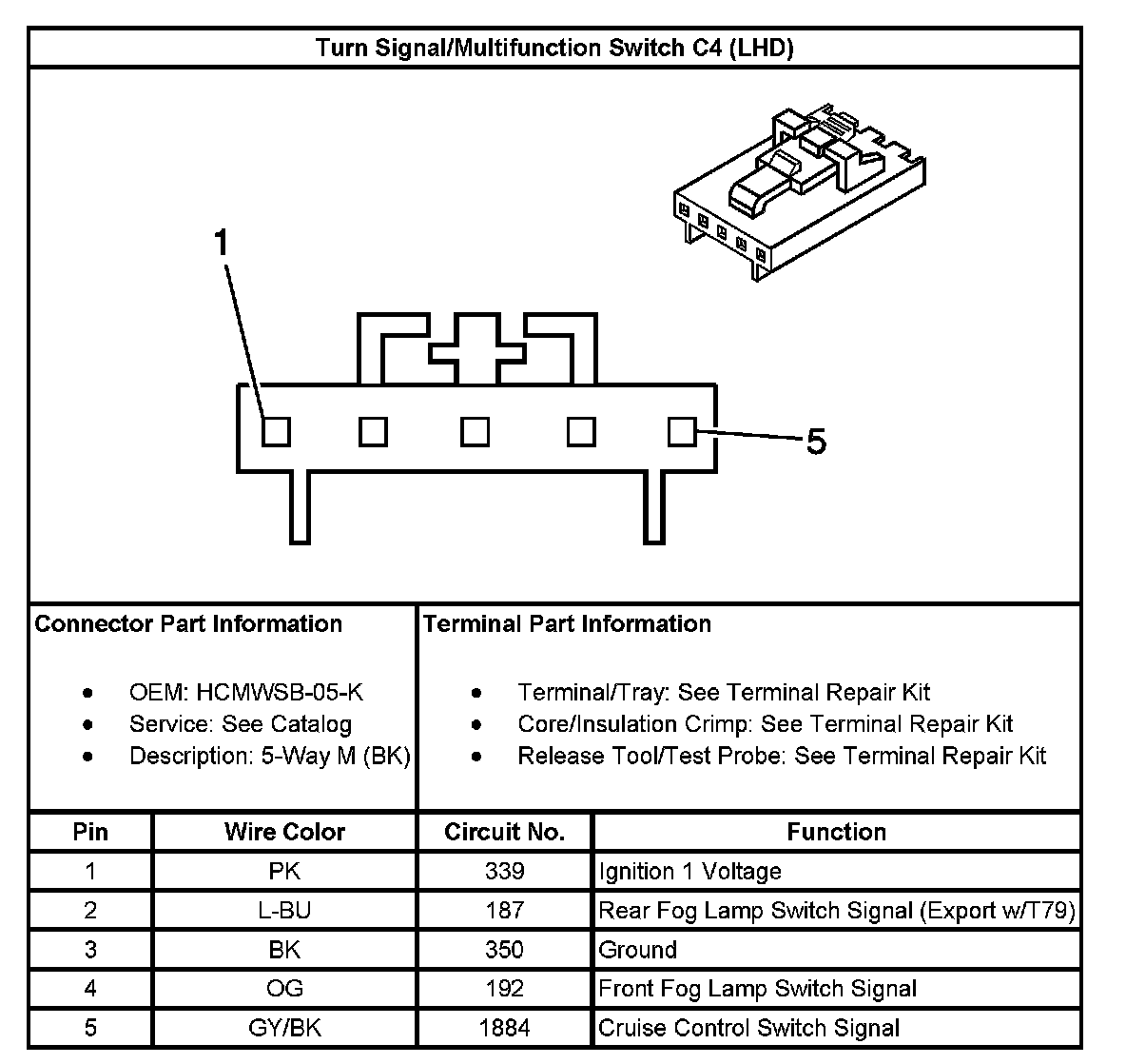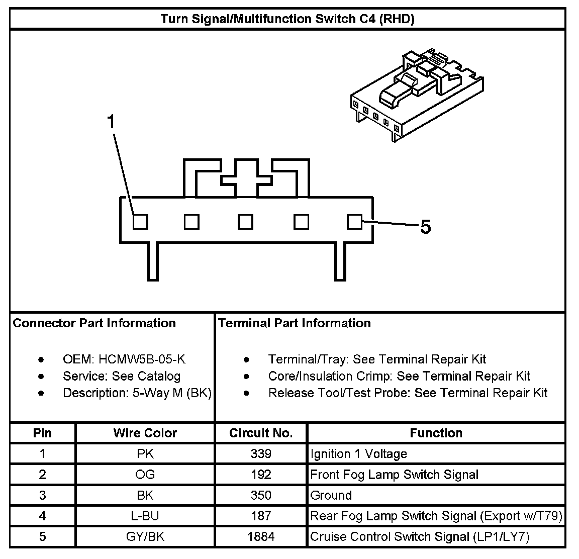 Turn Signal/Multifunction Switch C4 (RHD):