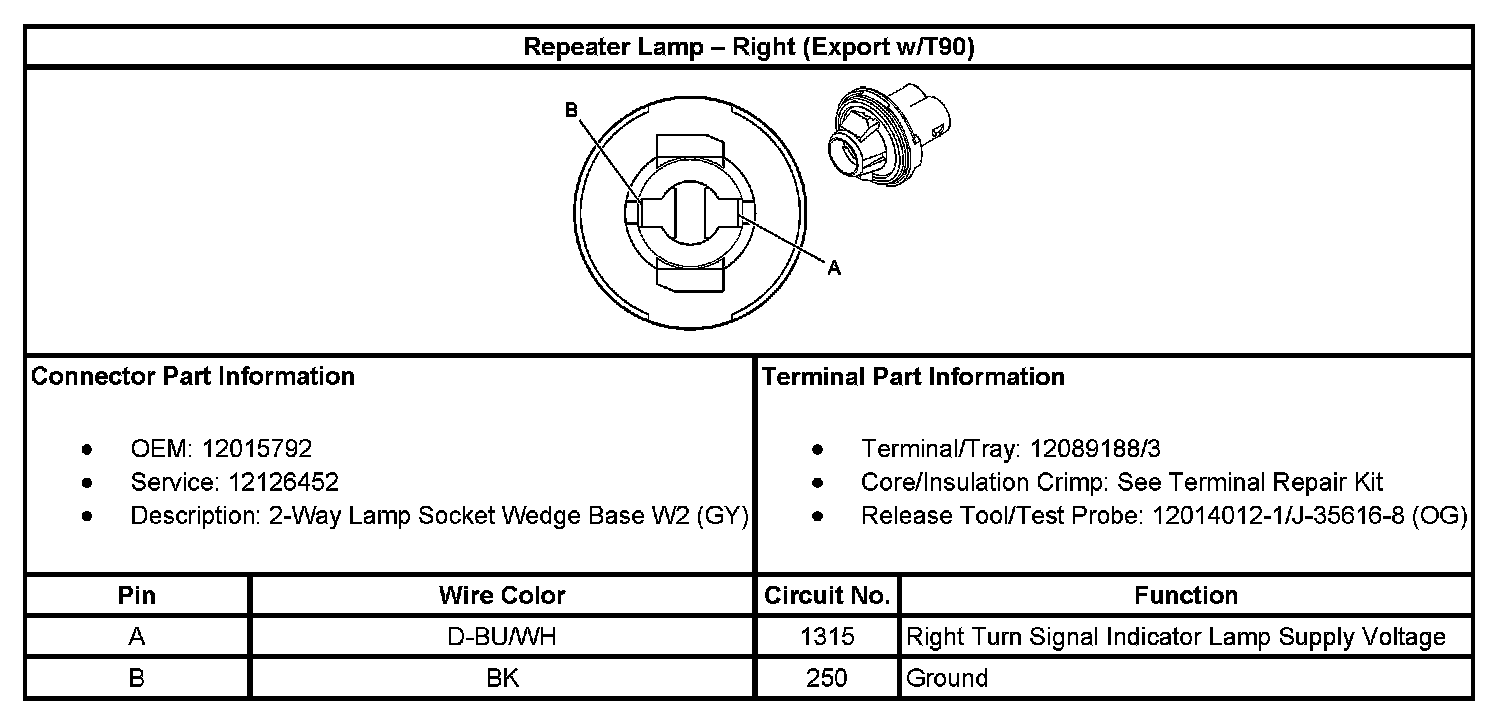 Repeater Lamp - Right (Export With RPO Code T90):