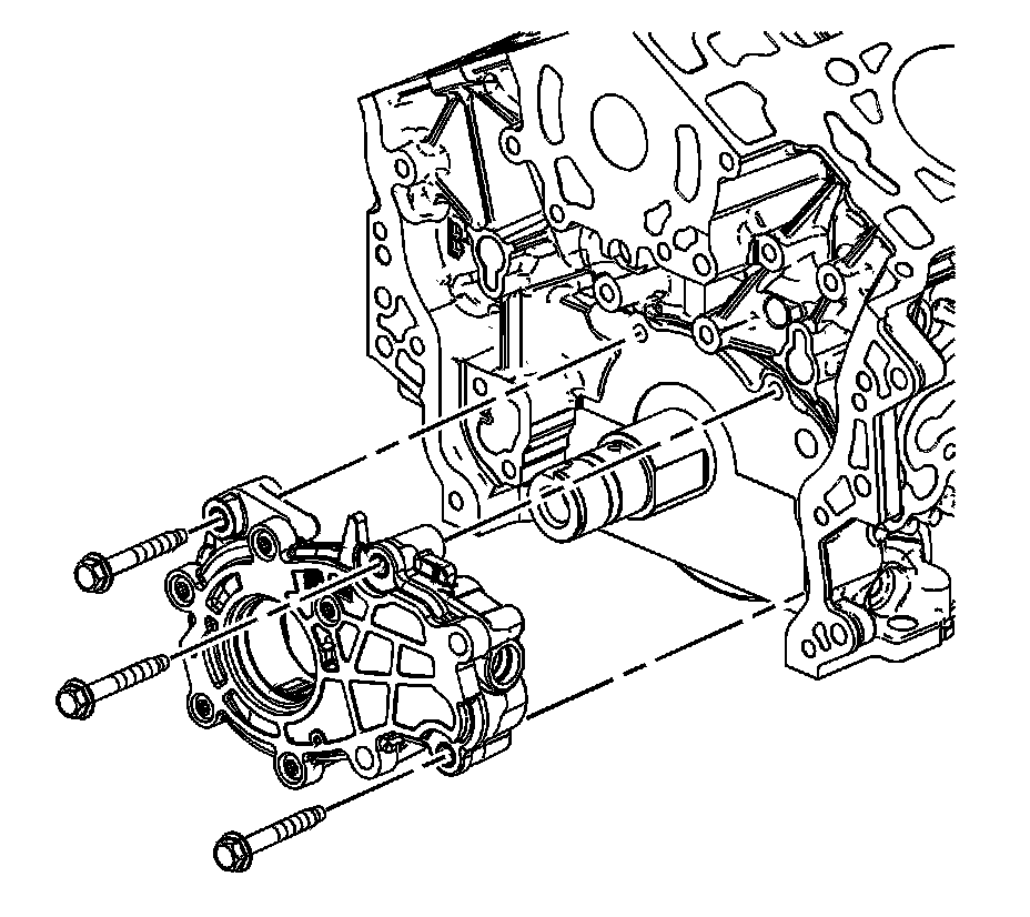 1. Align the oil pump generator with the crankshaft flats and install the oil pump to the engine block.