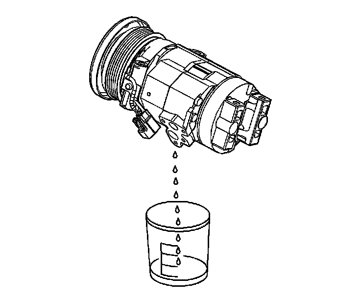 1. Drain the PAG oil from the A/C compressor. Rotate the compressor input shaft to assist in draining the PAG oil from the compressor.