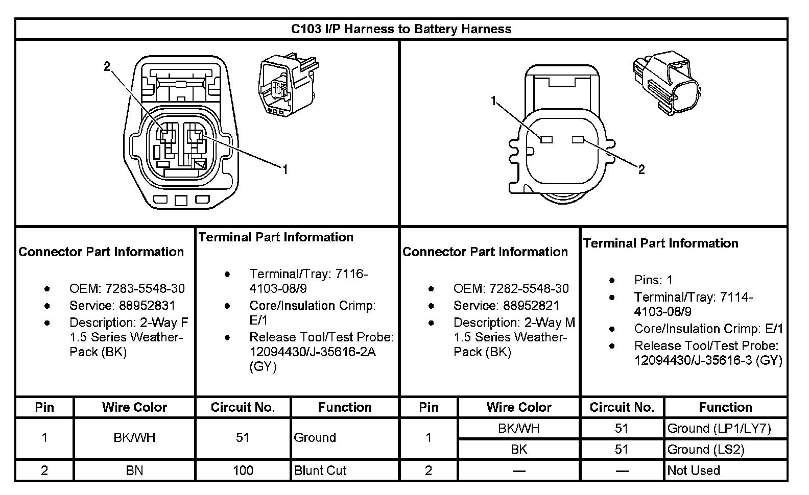 C103 I/P Harness To Battery Harness: