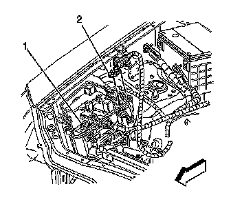 8. Pull upward on the harness at the locking tabs (1) in order to remove.
