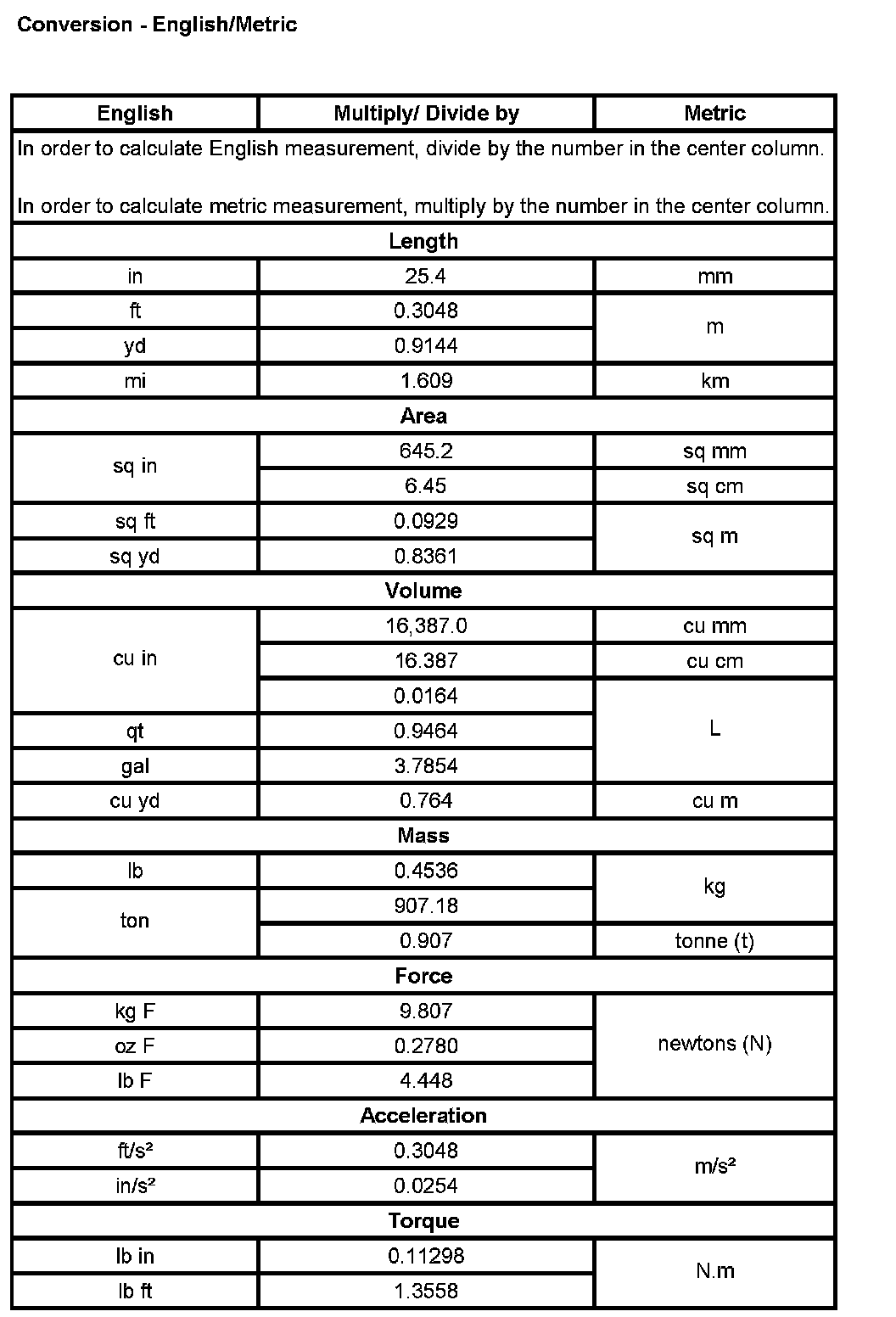 Conversion - English/Metric