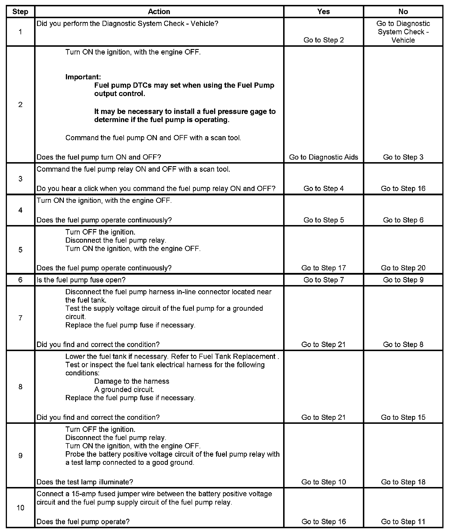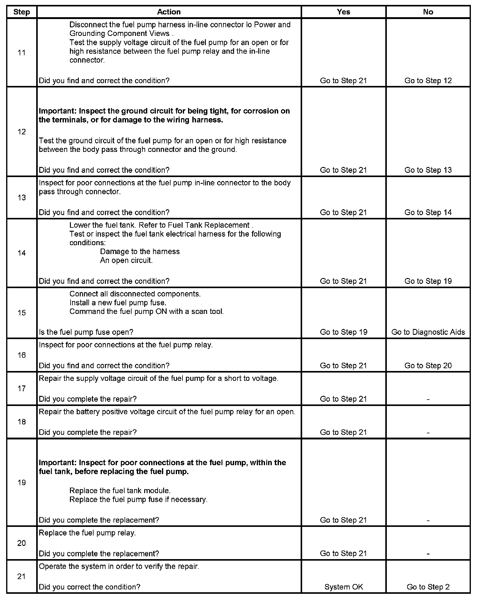 15. This step determines if the condition with the circuit is intermittent. If the fuse does not open, inspect the supply voltage circuit between the fuse and the fuel pump for an intermittent condition.