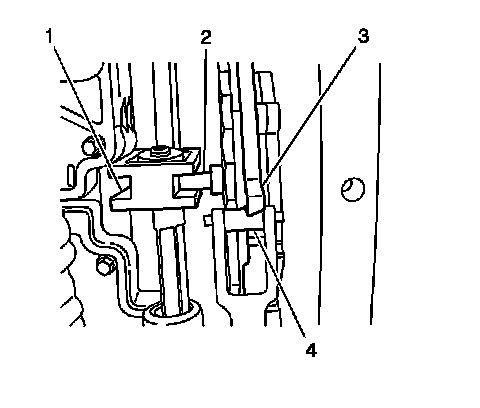 1. Install the manual shift shaft position switch (6), the manual shift shaft detent lever (4), the manual shift shaft assembly spacer (3), and the park pawl actuator (2) as an assembly. It may be necessary to push up on the park pawl in order to fully insert the park pawl actuator (2).